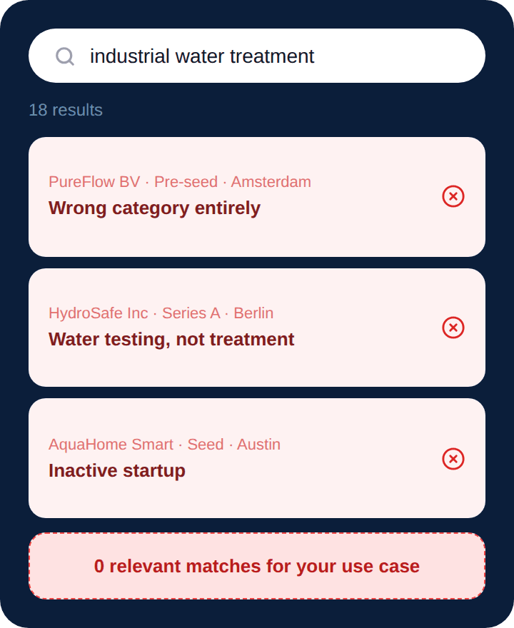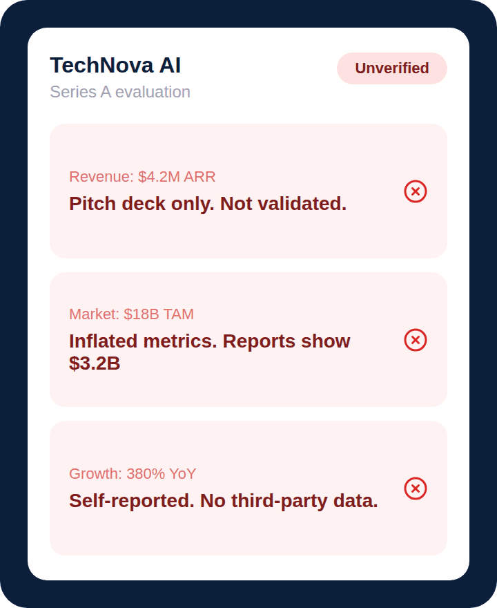 Unreliable insights. Inflated metrics without cross-checking. Startups that don’t exist in any registry.